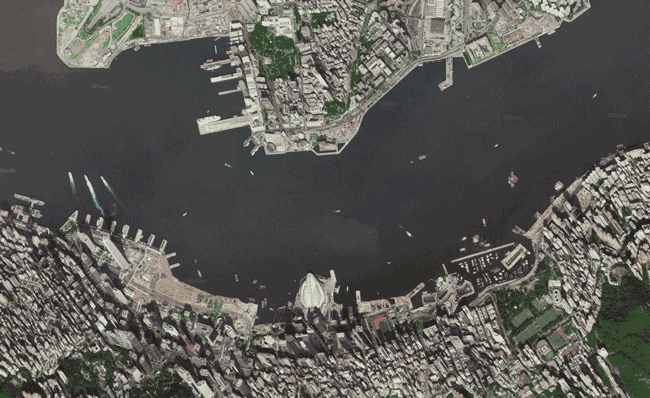 中环香港会展中心,和尖沙咀香港太空馆的造型,一个像一只灵龟(玄武),一个像是巨蛋。并且在地图上看,它们完全成直线隔海对望。