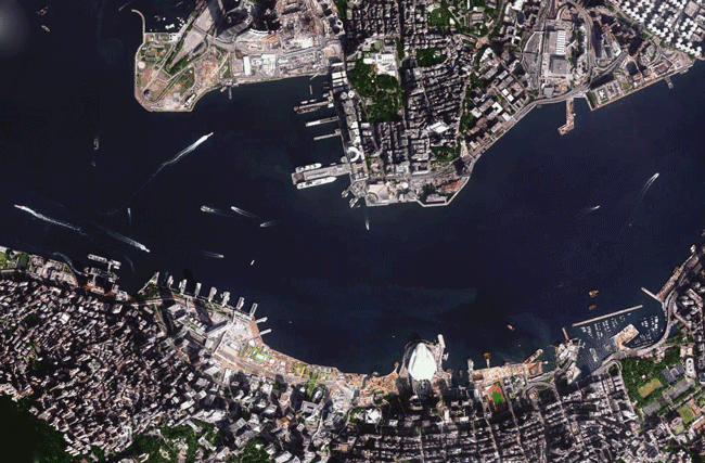 从鸟瞰图看维港的南北两岸,尖沙咀是凸出的地形,而中环则是下凹的地形!在西九龙没填海之前,这两个地形完全拼成一个完美的平面!在风水上称之为“迎送合局”,一般惯用在建筑风水上,而在地形上达到这样的吻合度,在中国发达城市中没有几处!