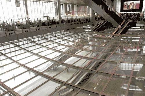同时,我们看一下这个一楼所谓的天花,其实是透明的玻璃!因为煞气要能透上去,但又不能太多,所以汇丰用了“玻璃窗”的原理让煞气缓冲到大厦之中。