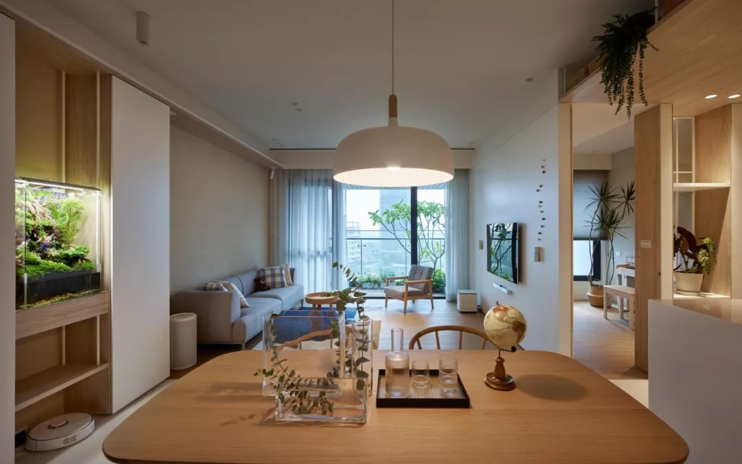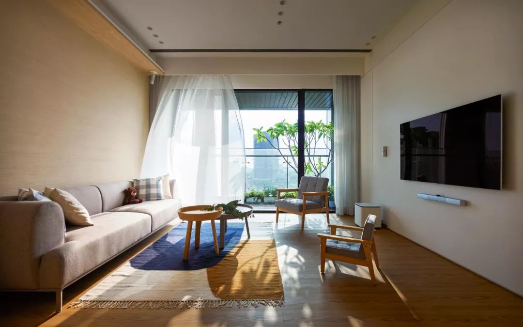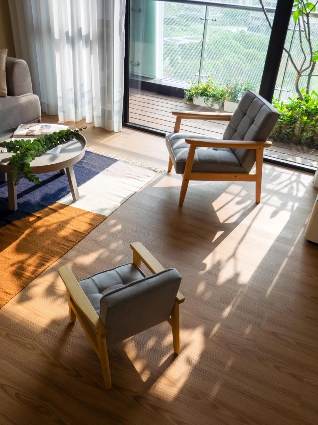 这是一套174平米的日式简约风格整体以简单宽敞的硬装浅色的空间搭配木质的自然再饰以绿植与精致的饰品为我们带来的是一个轻松闲适的居住空间平面布置图客厅客厅以简约的空间搭配自然的木质感带来了一个轻松闲适的休闲空间木地板上摆一套灰色布艺沙发双拼圆形茶几还有木质+布艺坐垫的休闲椅在这个客厅了坐着感觉满满的