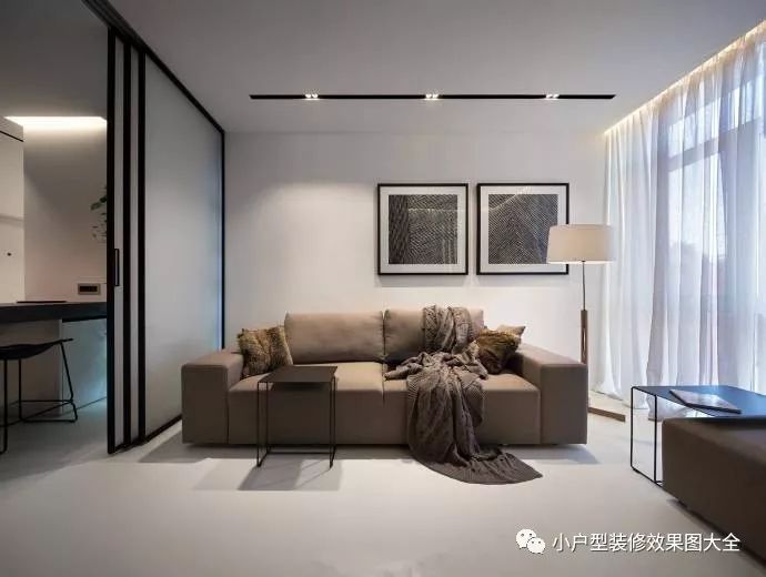 咖色的沙发,配上墙上的两张画,其他的地方就是留白,这样看起来就显得空间宽敞了很多。