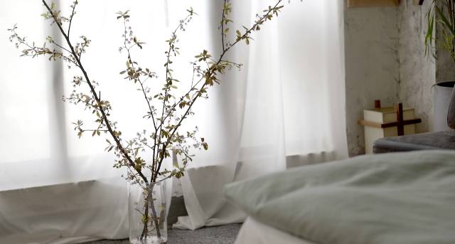 为了制造光影,他把所有的门统统拆掉,换成竹帘和帷幔,房间与房间之间减少墙体和遮挡物,尽量保持光和物体的互动,让整个空间流动起来。