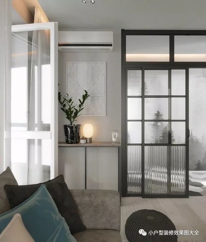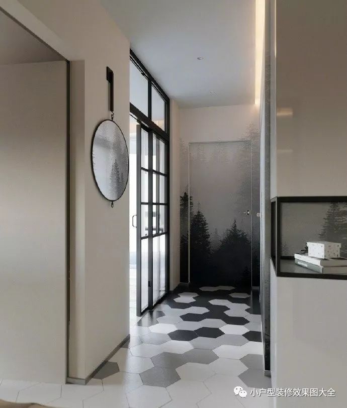 点击上方蓝字,记得关注我们!让心情去旅行今天,小编要和大家分享的是一个现代简约风格的小户型装修案例,简约大气的装饰营造了一种精致的视觉效果,黑白灰三色的经典搭配,加上空间格局的合理划分,让生活的地方充满了理性和规整,却不会在这个两居室的房子里感到束缚。下面装修之家网小编就和大家一起去看看吧!进门的