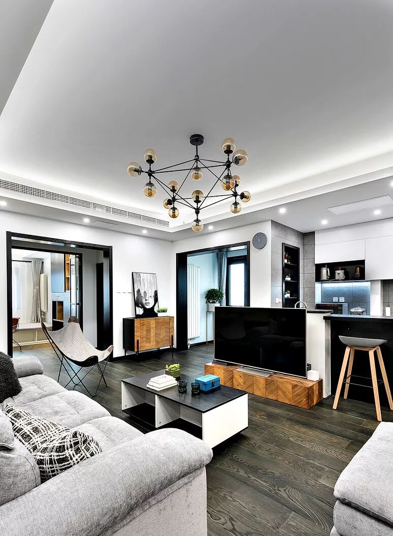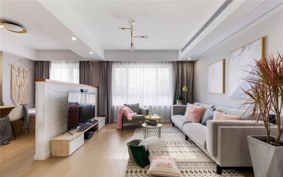 电视墙形成的隔断时尚感十足,让人眼前一亮。这种隔断轻巧实用,还能节约客厅面积。
