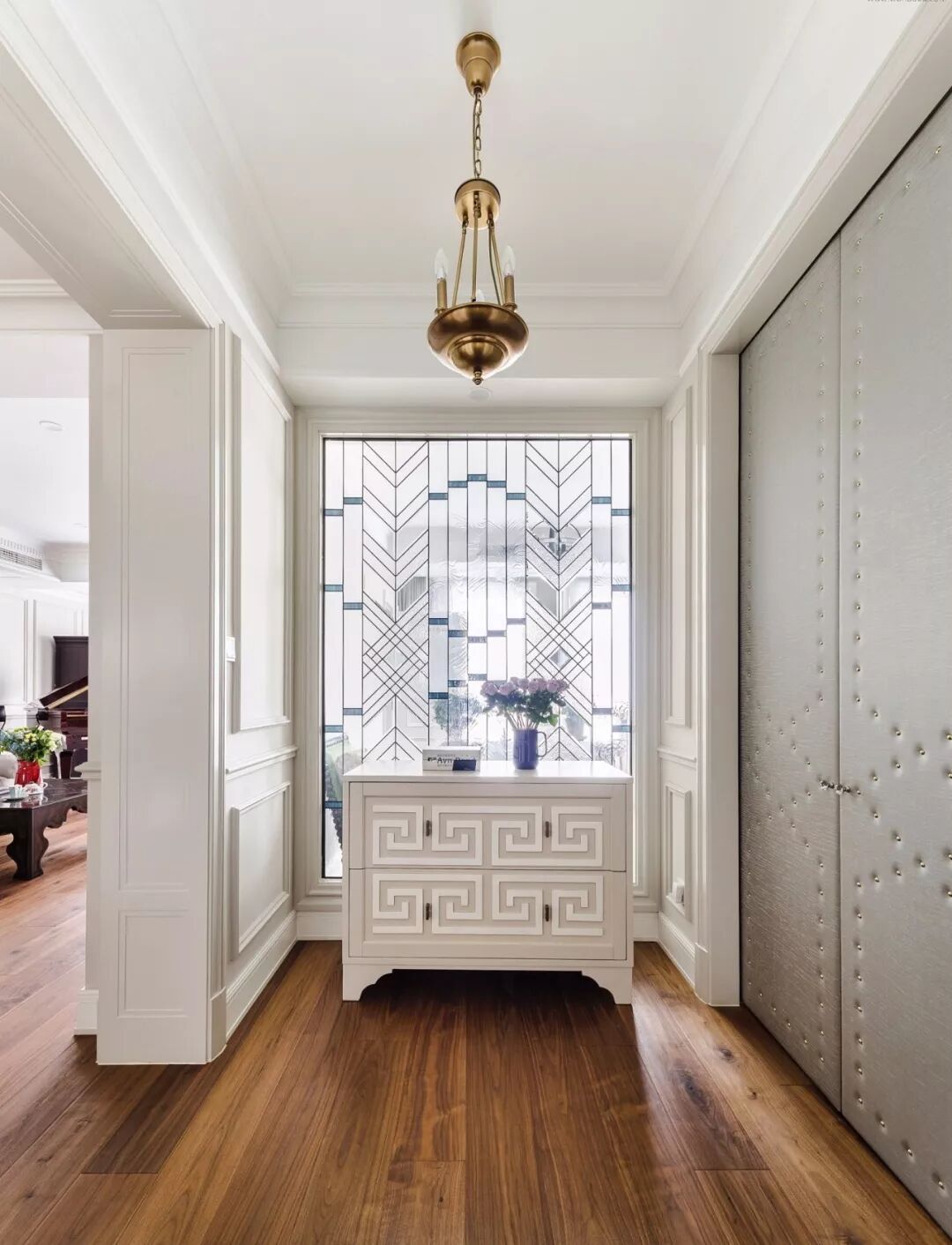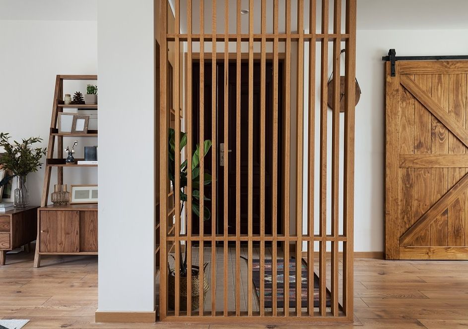 对于采光不佳的玄关来说,镂空的定制柜是隔断玄关和客厅的最佳选择。不仅起到了遮挡和隔断的作用,同时自然光线可以透过板层从客厅进入玄关,补充不足的采光。