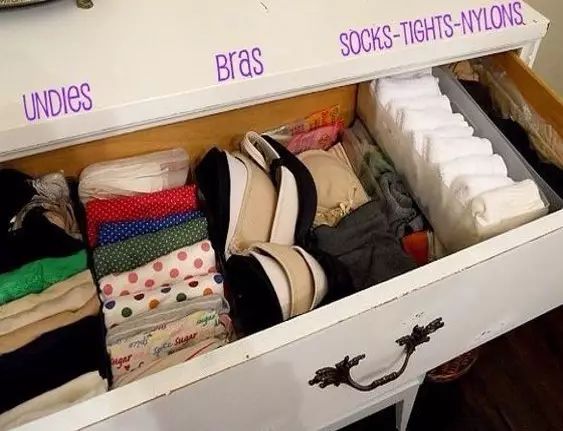 嘿姐在以前内衣收纳视频中也曾经分享过一个,每个格子的挡板都自带弹力,全部打开可以收纳袜子,全部收起又能收纳内衣,好用到流泪。。