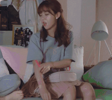 网上找到一个慢动作版的韩国妹子脱Bra动图,解开内衣搭扣,两边肩带从袖口先卸下,然后从中间就能把Bra拿出来。