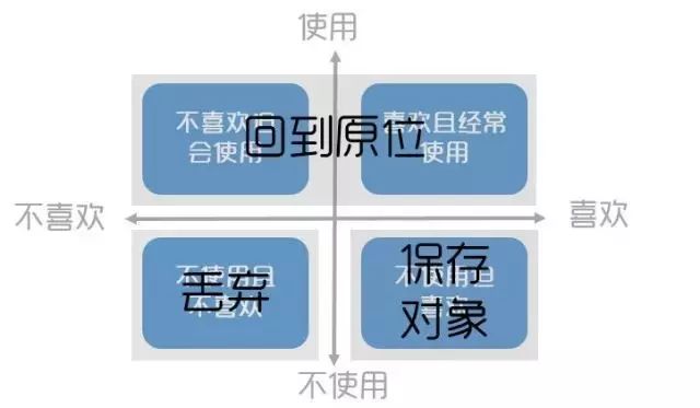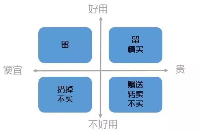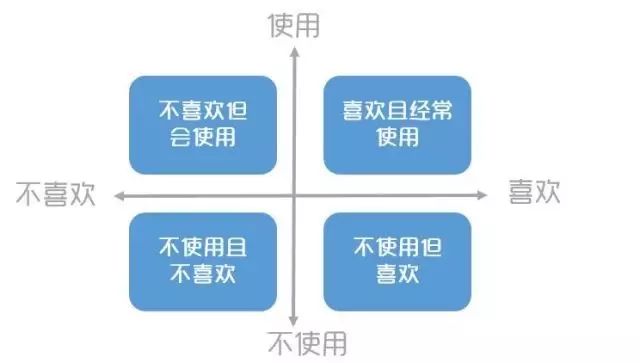 这种划分方式,小蚂蚁理解为是按照功能(使用不使用)和情感(喜欢不喜欢)两个维度来决策的。
