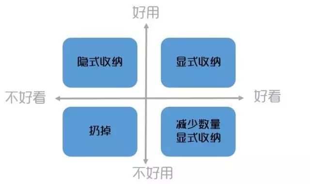 第一步:整理之前,先找一张纸,把四个象限画出来,找到你喜欢和适合的判断模型(颜值还是使用频率等等)。