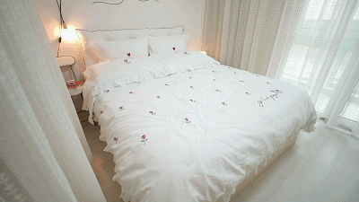 床头床尾都不靠墙的,也可以用挂帘,既有安全感又能划分位置,不至于看起来光秃秃的只有一个床。