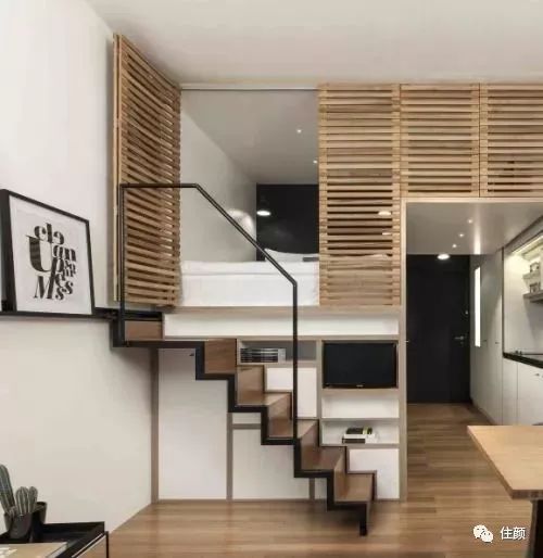 loft也是同理,需要的话可以把一整面都做成木隔断。