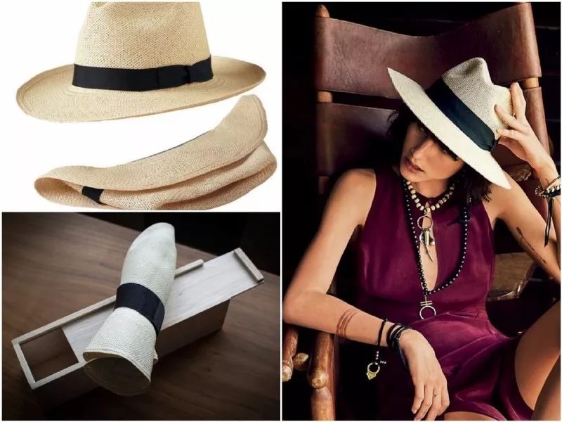 这种帽冠当中有凹痕的帽子叫做巴拿马帽,顶级巴拿马帽具备绝佳的柔韧性,可以卷成一个斜三角形状的圆筒,收到筒形盒子里,再打开也不留痕迹。
