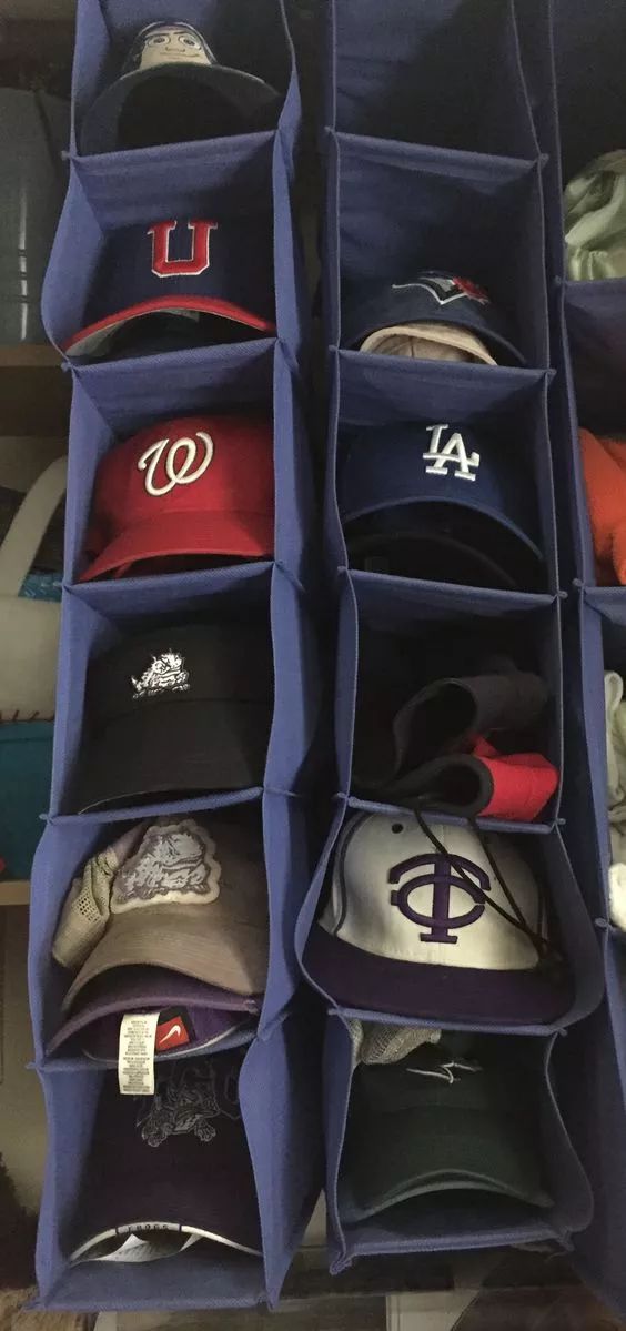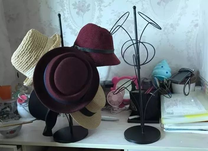收纳的时候注意,帽檐按照从大到小往上叠。这样一来,每顶帽子都能看到,方便日常搭配。