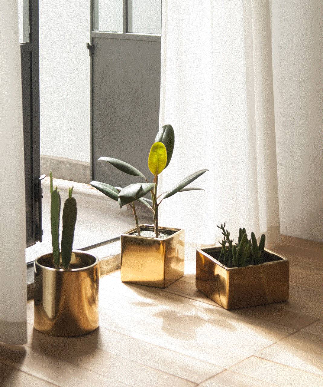 插花种植皆可,陶土的材质配上大气的金色,在不舍弃花盆基本功能的前提下,追求一种纯粹轻奢之美。