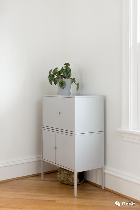 墙角的柜子承担了整个客厅主要的收纳功能,柜子下的小篮子则是家里宠物的小窝。