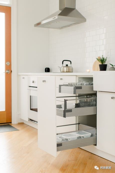 厨房不用设置上部吊柜,因为所有厨具的收纳干干净净而且绰绰有余。这样一来,就有多一半的预算用来购买更好的单品,想想似乎很心动。