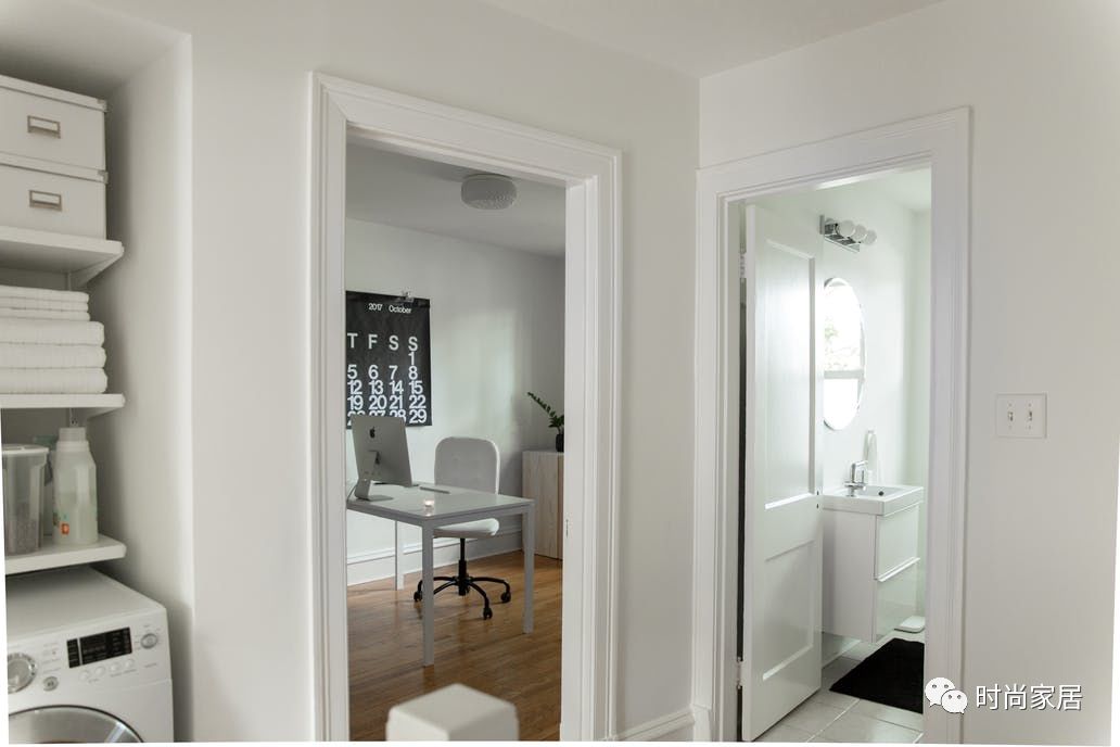 在盥洗室和卧室之间的走廊收纳区,设置洗衣机和干衣机,克里斯汀觉得用起来特别方便。