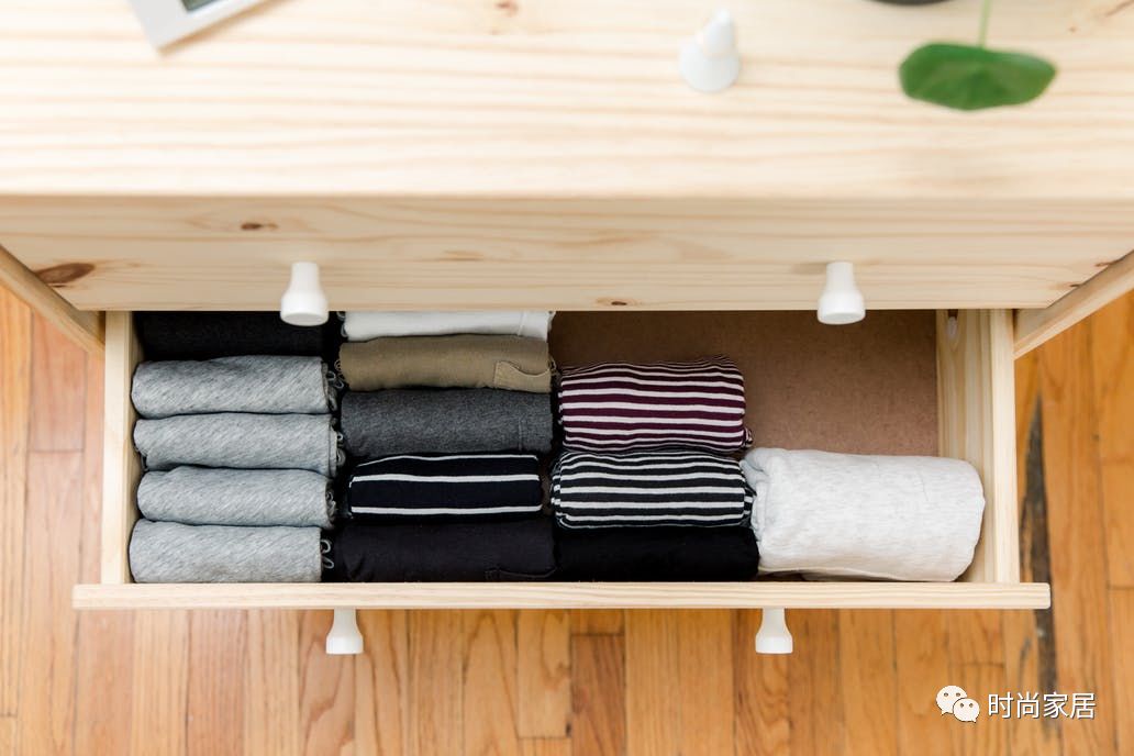 单衣小物都卷好收纳在抽屉里。抽屉还有这么多空余的地方!好让人羡慕!
