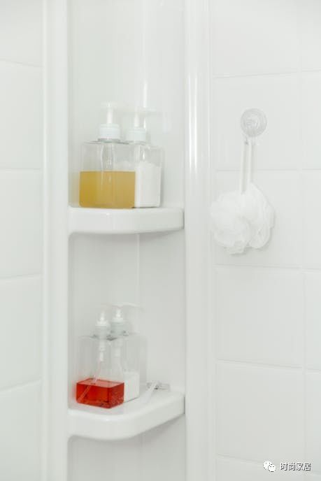 放在外面的洗漱用品都选择白色或者同样尺寸、风格的容器。