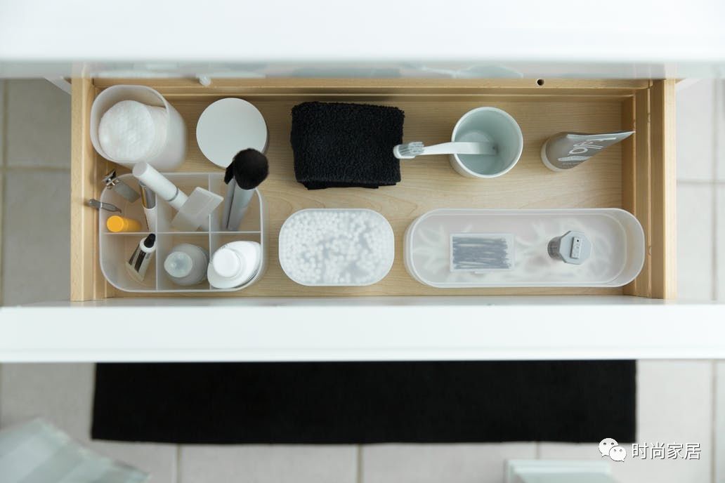 其他洗漱用品杂物全部收纳在台盆下的抽屉里,还一点都不拥挤……