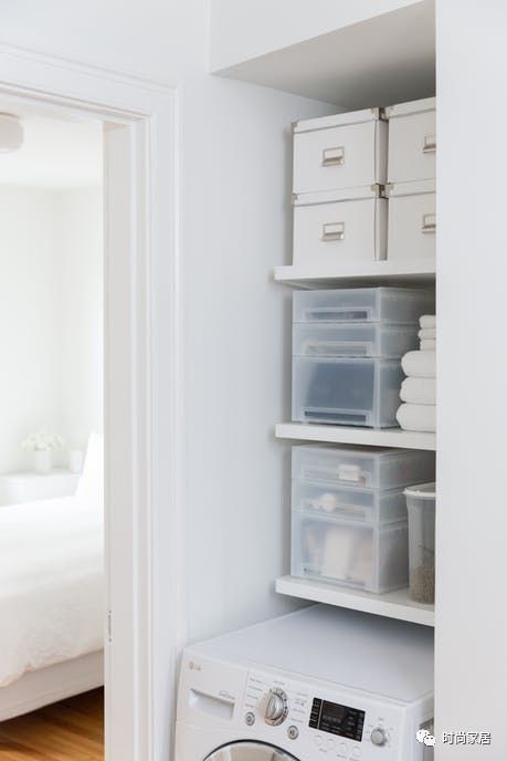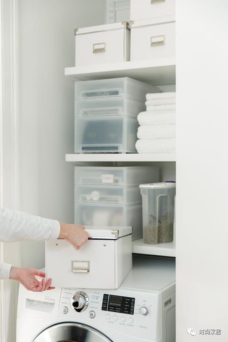 洗衣机兼做操作台面,收纳柜里的物品,可以在洗衣机上方便地搁置和查找。