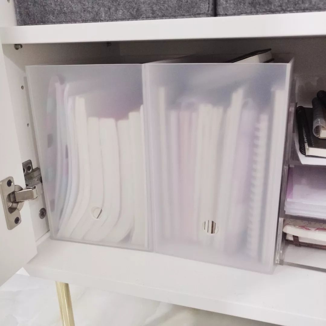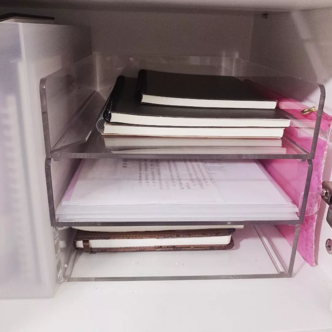 终于被我在淘宝上找到这款亚克力质地的文件收纳架,A4大小很够用,让我的不同功能的本子和文件都能分开收纳。
