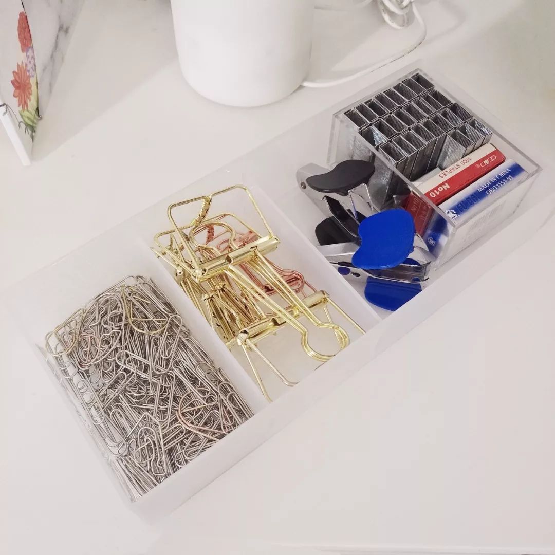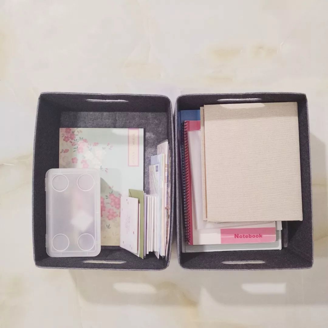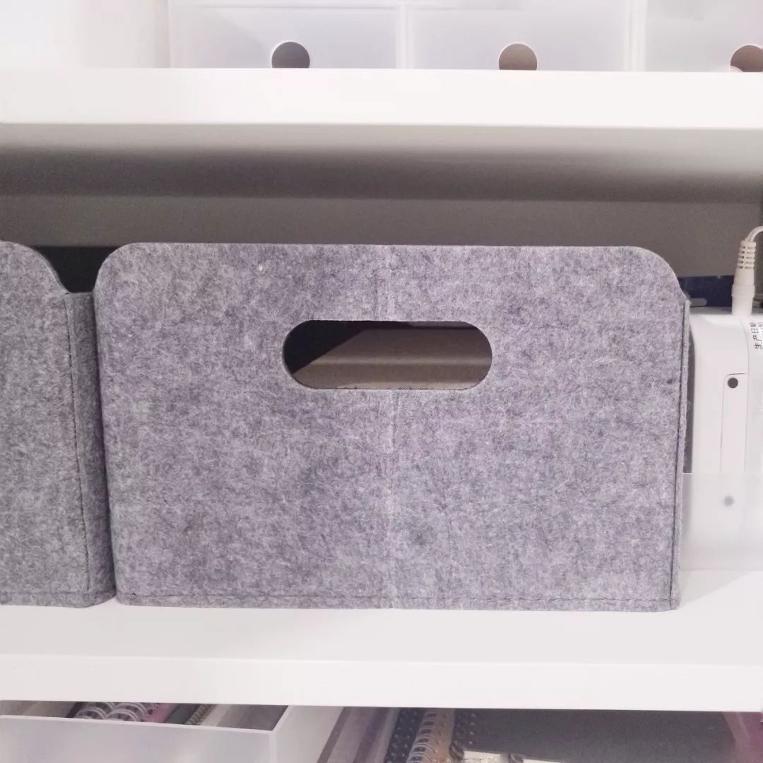 用收纳盒最大的好处就是:即便里面的东西不整齐,从外观上看还是很干净整洁。