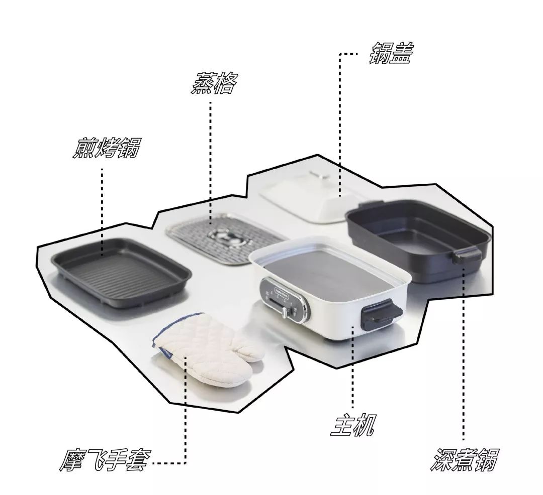我选的是白色标配款,有深煮锅,煎烤盘和蒸格三个配件了,完全可以满足日常的烹饪需求。