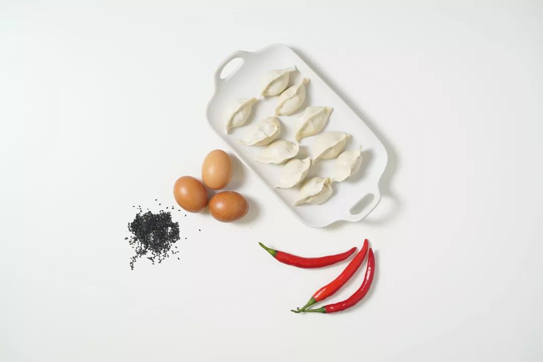 1 准备食材:水饺(自己包或者买速冻的都可以),鸡蛋,芝麻,辣椒(用来装饰,没有也没关系,不影响吃!)