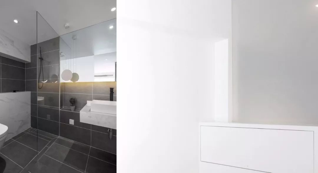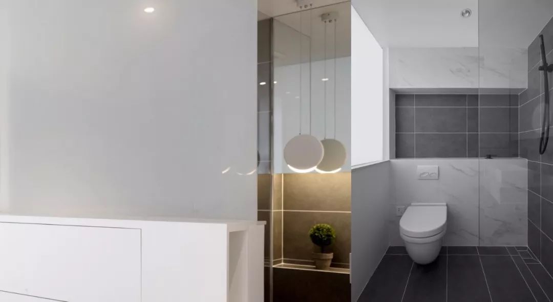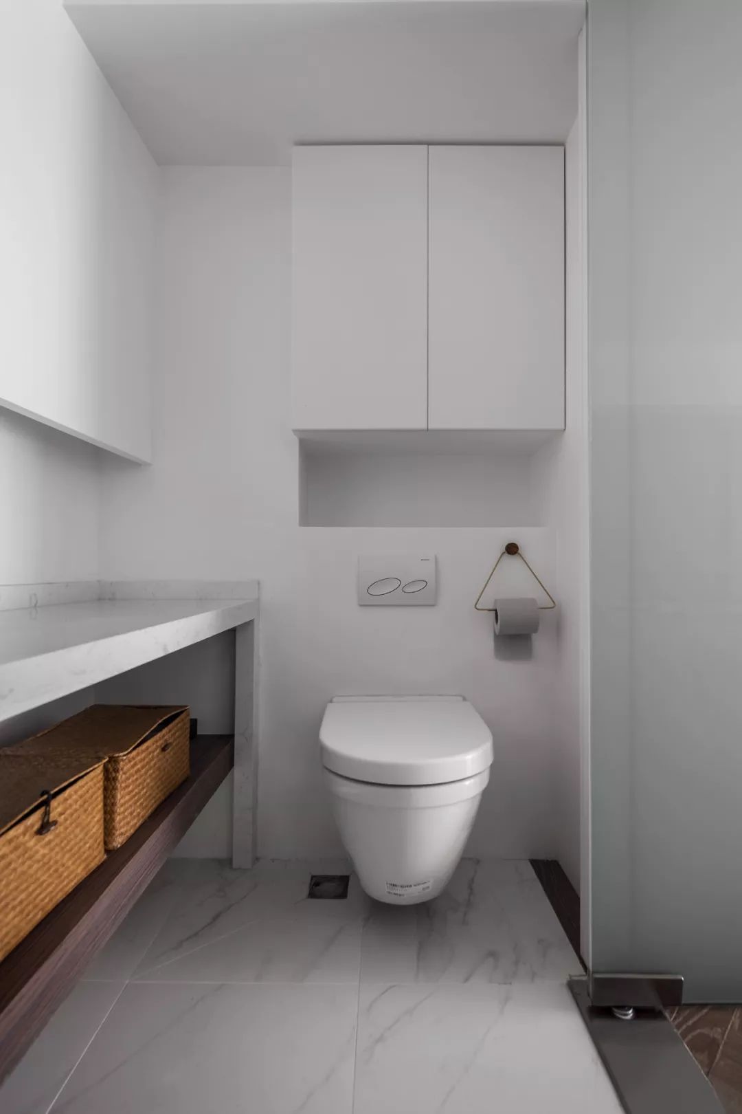 壁挂马桶后的吊柜隐藏了巨大热水器