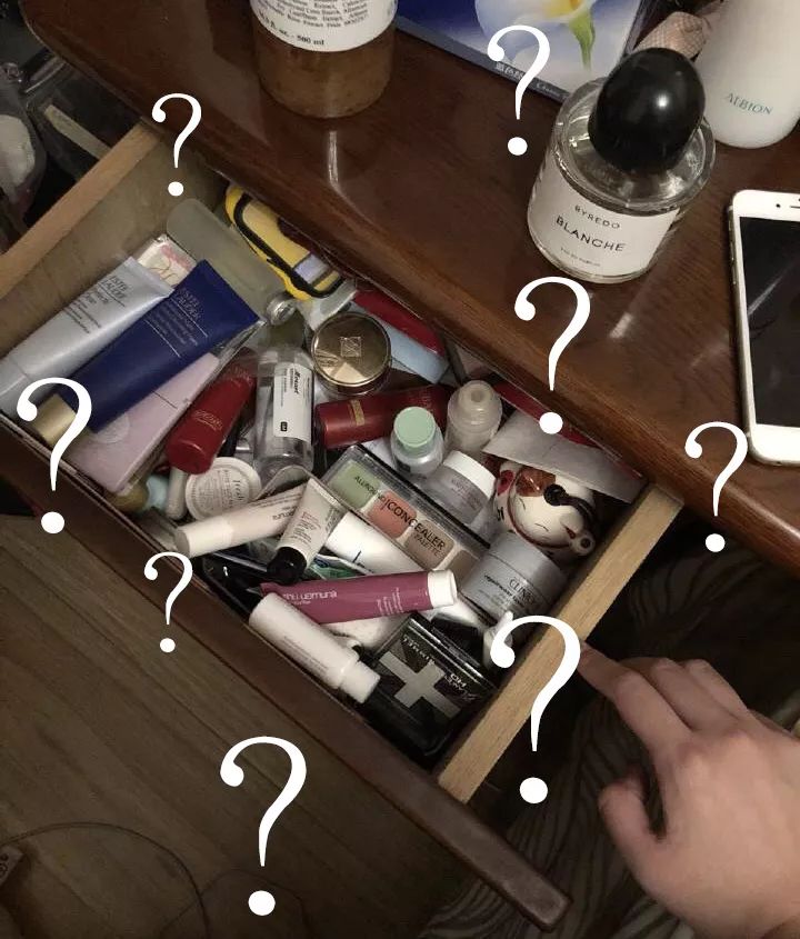 看到这些乱糟糟堆在一起的化妆品,第一反应是糟心!顿时不知从何处下手,脑子一片空白,我刚刚学了什么,那个妆要先涂什么来着?随后化妆的热情减了一大半。