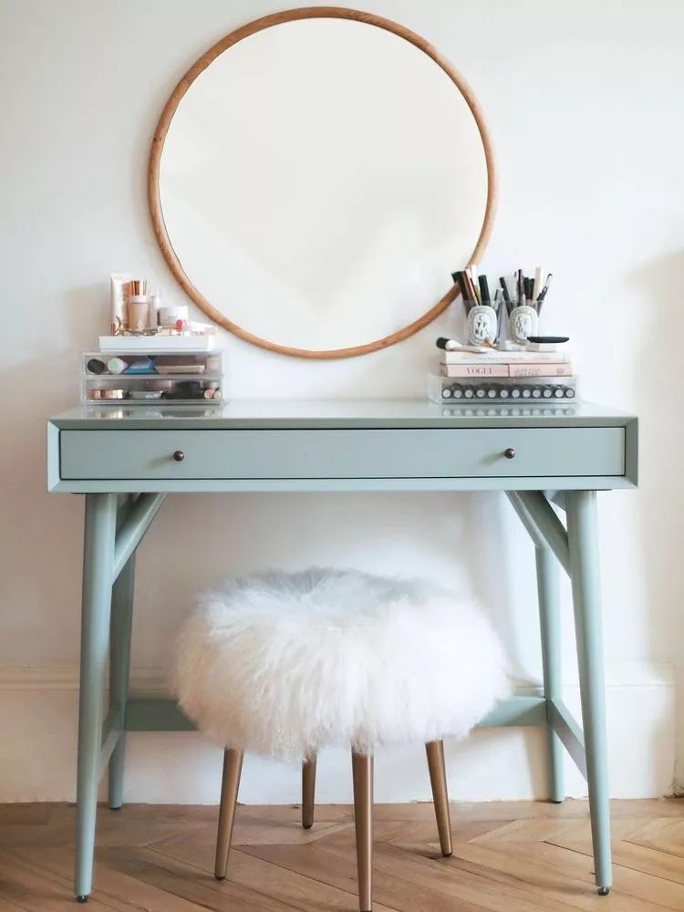 一个看起来整洁舒适的梳妆台,为化妆这件事增加了不少的仪式感。挑拣今天想用的那只口红,考虑用哪副耳环来搭配新买的裙子,收纳得一目了然的梳妆台,会清楚地给出你答案。那就从梳妆台的收纳开始,开启一段精致美美的生活吧!