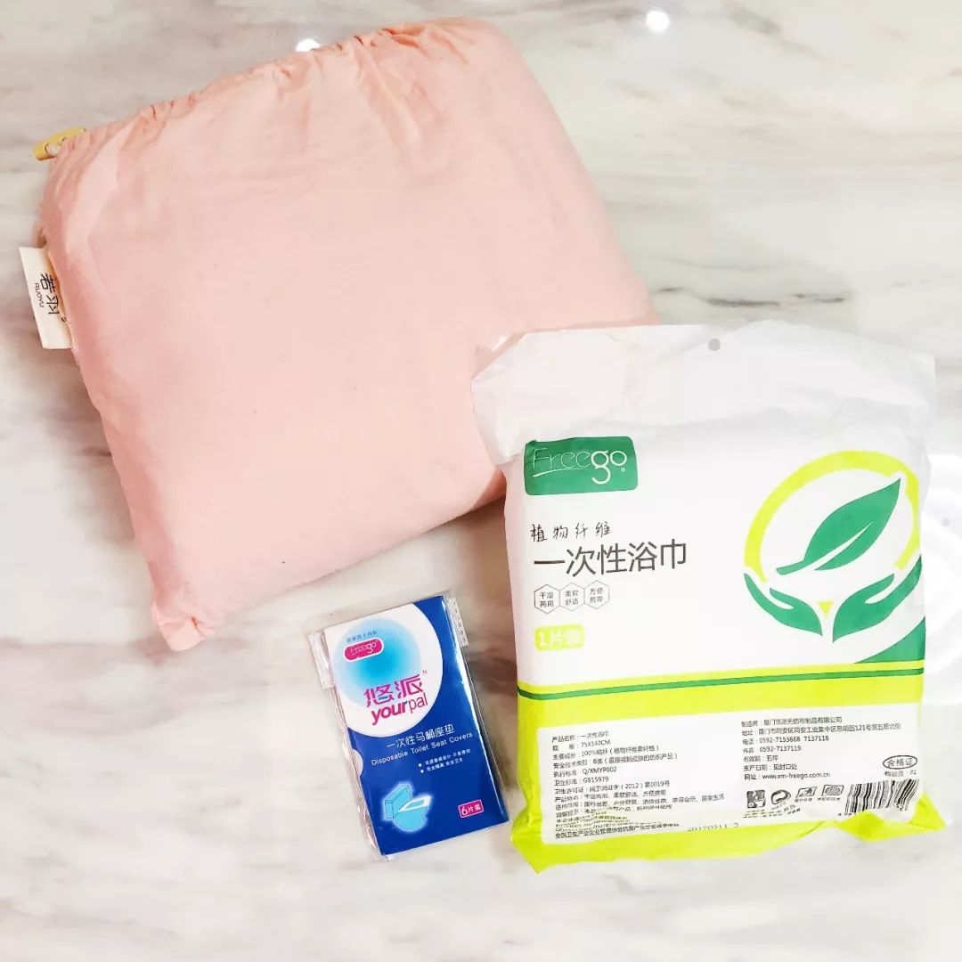 一次性的浴巾就能解决我的烦恼。是那种类似湿巾纸一样的厚质地浴巾,吸水性也不错,用完就可以丢弃非常方便。