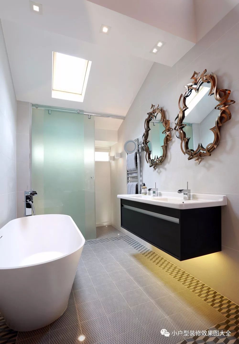 开放式的卫生间,带着点精美的小灯光的装饰,简简单单的装修效果很是明了。