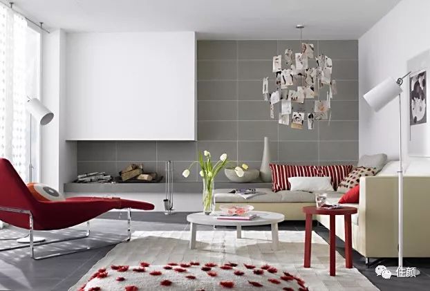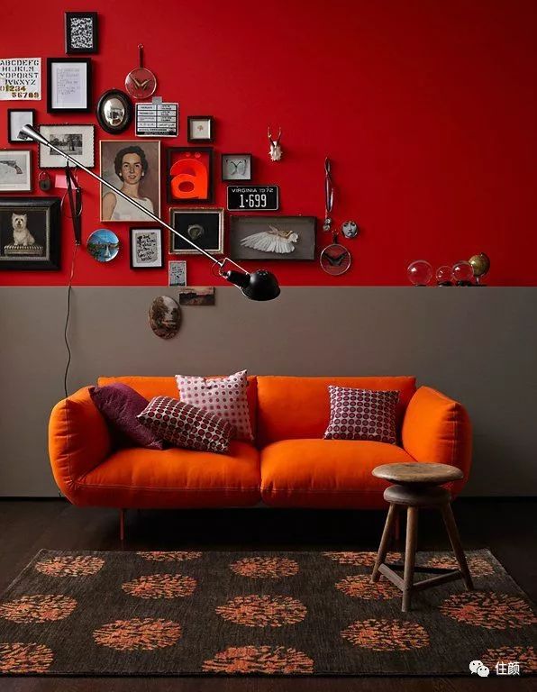 半墙拼色也是颜姐比较偏爱的一种搭配了,在单品的选择上同样是根据主色调灰+红的来做选择,会毫无违和的融入空间。
