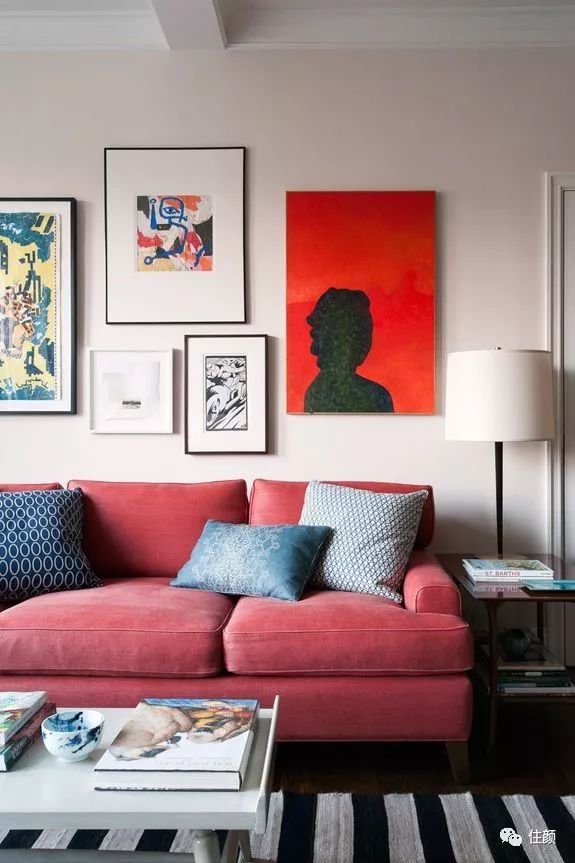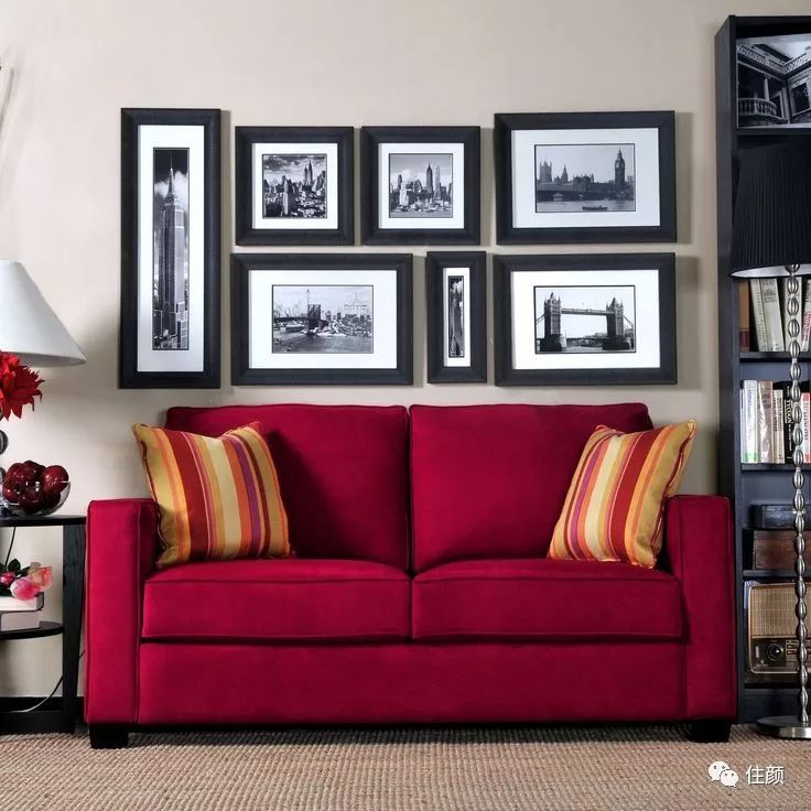 红色上墙有点不敢尝试,那就退而求其次试试家具单品!沙发作为家里使用频次较高的家具,通常颜姐是不建议用浅色,灰蓝棕黑是色彩选择上的长青色!耐脏且好搭配!但是在给大家找色彩搭配方案的时候发现,原来红色的沙发用在家里是如此惊艳: