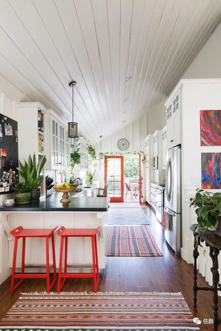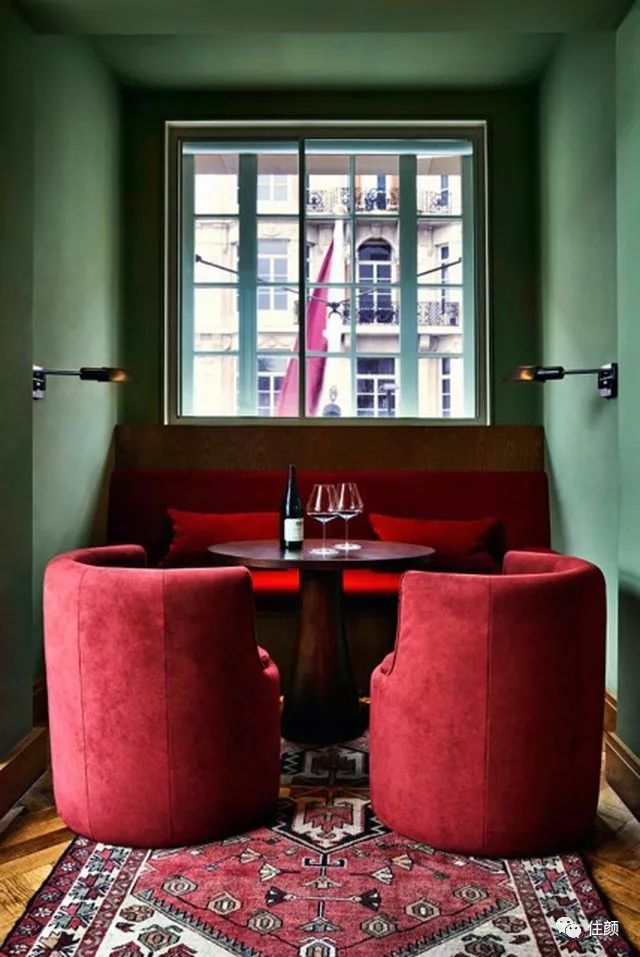 红与绿撞出节日气氛,若你家刚好有个2㎡,不妨在平淡无奇的空间里做个突破性的尝试,用鲜明的撞色打造一个休闲角落,可以喝茶用餐读书,岂不美哉!