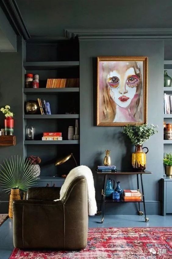 这种情况下的挂画颜姐建议选择不那么具象的,稍微抽象一些,尽量是以颜色为主,和空间更搭更显艺术气息。