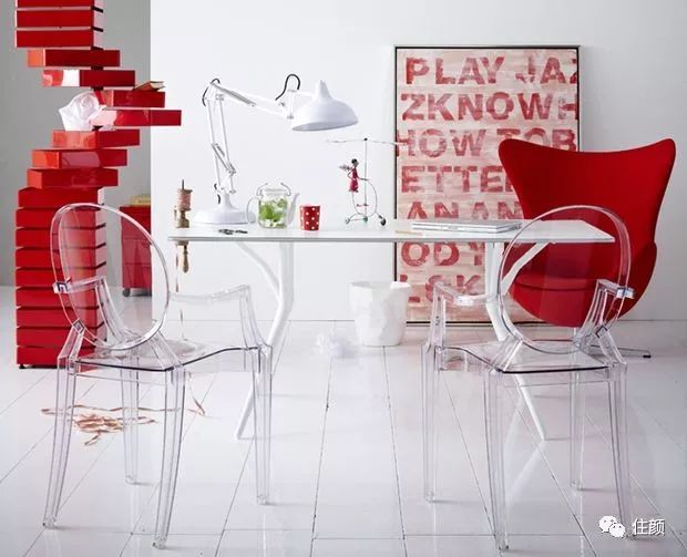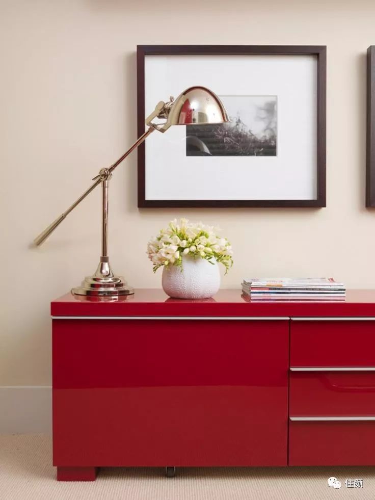 关于红色小件家具的运用,你可以抓住的一个要领:红白色一定是最经典的配色,如果你家是白色打底的空间,就大可放心大胆的使用红色家具。
