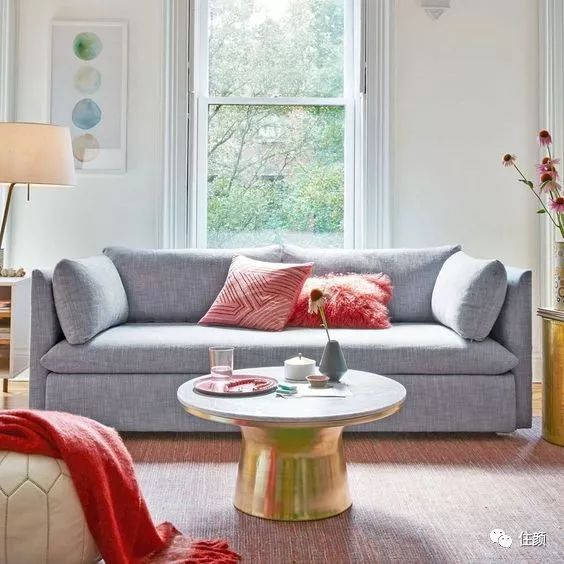 彩条抱枕搭配纯色沙发,不仅更显突出,而且还衬托出沙发的雅致,有时候小面积点缀的作用不可忽视哟~