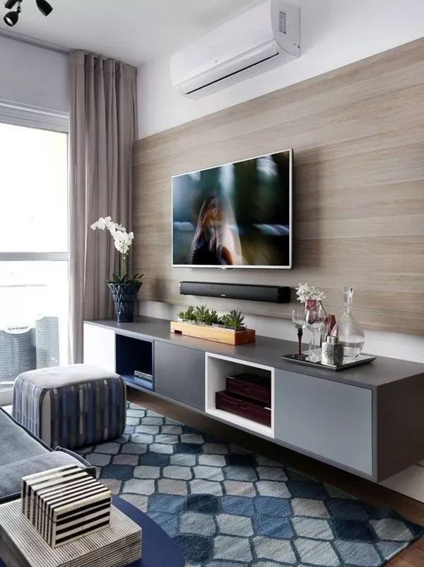 按理说,地柜式的电视柜更适合小客厅,但小户型更需要储物空间,把杂物藏起来,才不会让家显得乱糟糟的,因此,齐家美美个人更推荐安装组合式电视柜和板架式电视柜。