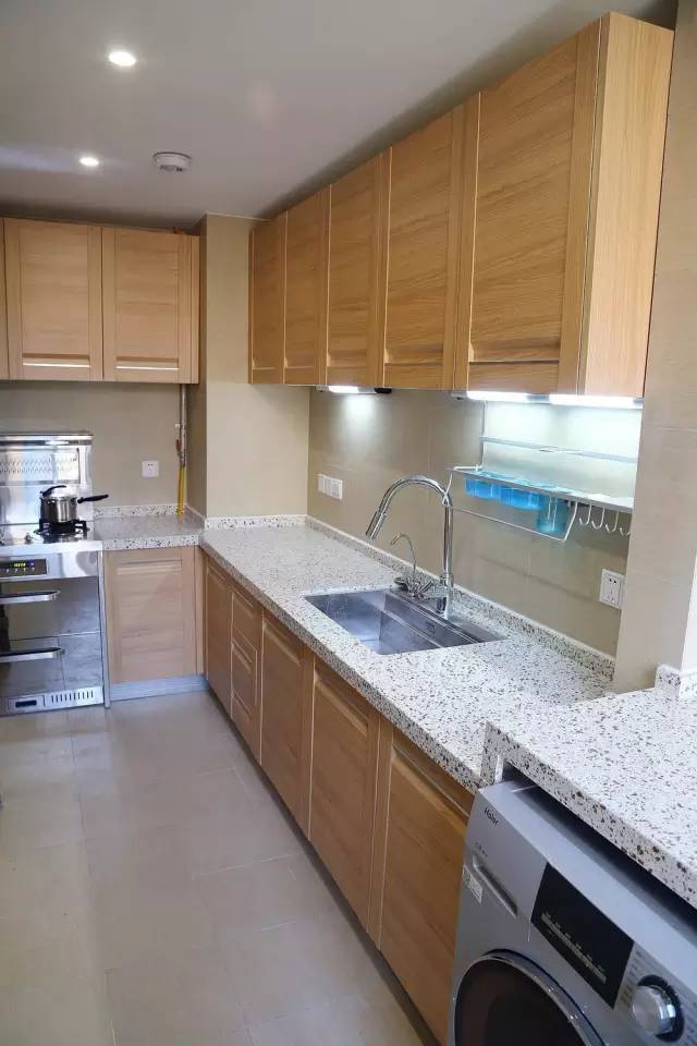 L型的的橱柜,虽然厨房不大,但功能划分明确。