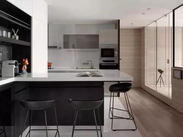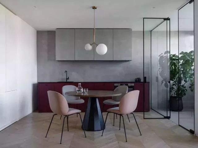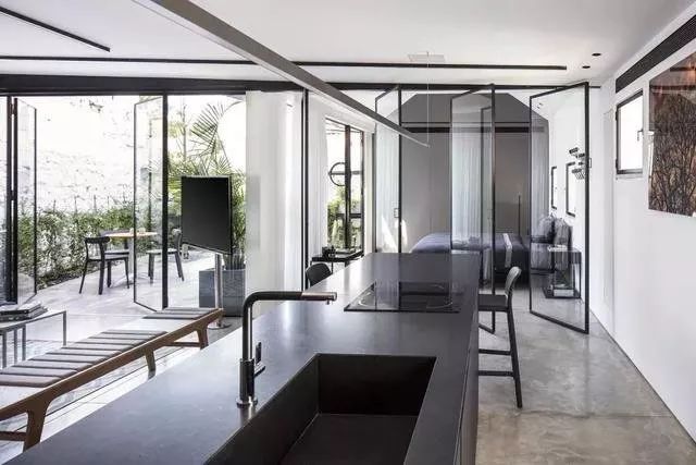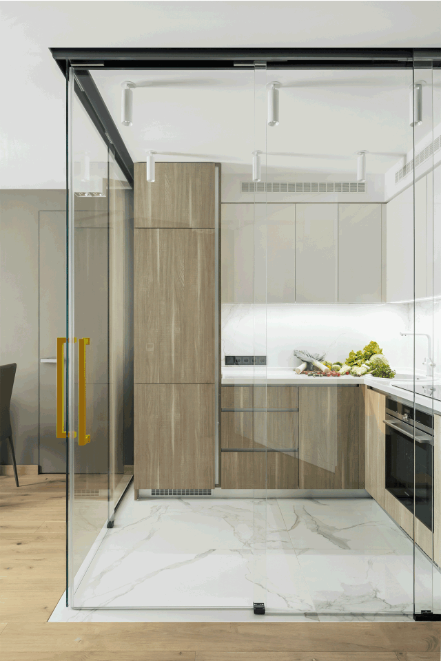 ▼墙面需要小段玻璃隔断作为点缀,正好呼应折叠玻璃门的质感。