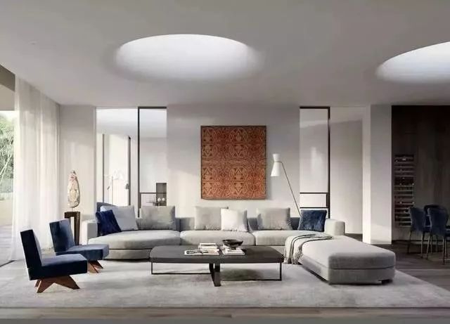 ▼半截玻璃,半截石材虚实结合,相得益彰,增加客厅的趣味性与丰富性。