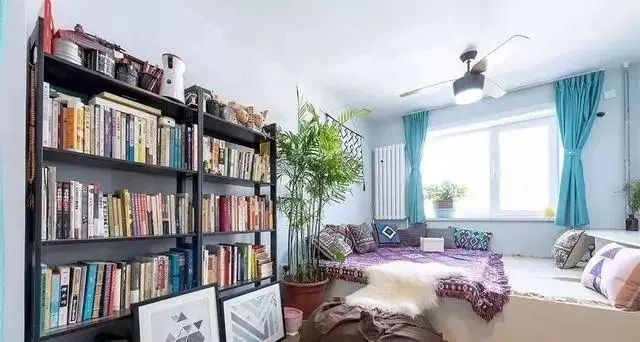 次卧还放了一排书柜+一个懒人沙发,就营造出一个阅读角。