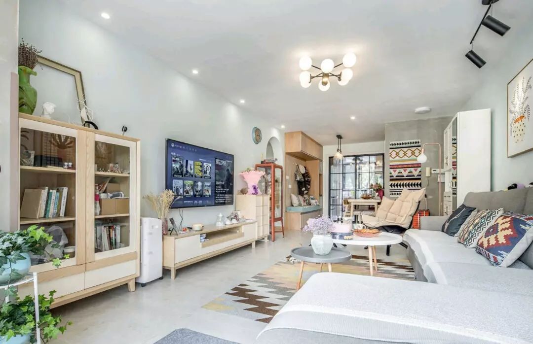 简单的原木家具,宜家风格的沙发,是那么的年轻活力
