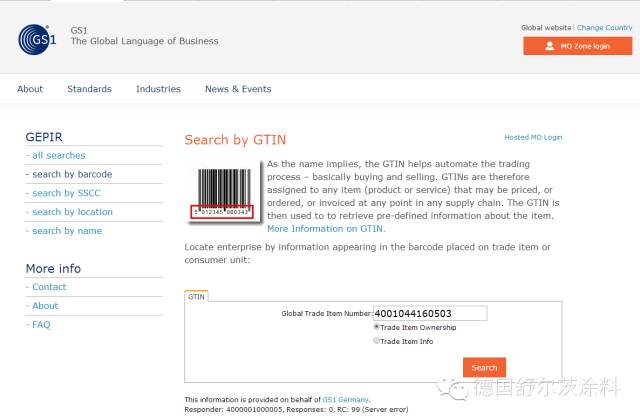 1、输入网址 http://gepir.gs1.org/v32/xx/gtin.aspx