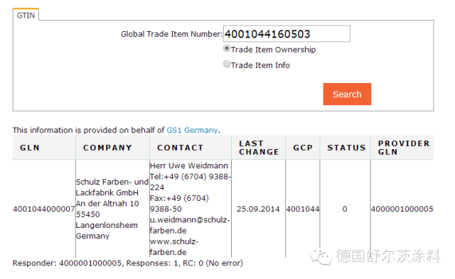 每个消费者都关心的一个问题就是产品的真假。以下步骤告诉大家如何辨别舒尔茨涂料的真伪。1、输入网址 http://gepir.gs1.org/v32/xx/gtin.aspx跳转到以下网站,网站打开速度有些慢,请 耐心等待。例如:在空格框里输入要查询产品的条码例如NP1600 ,输入条码下面的数字得