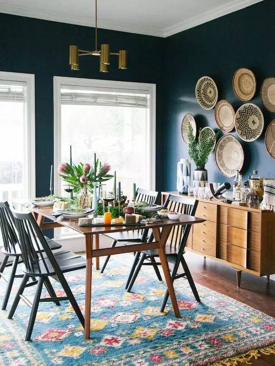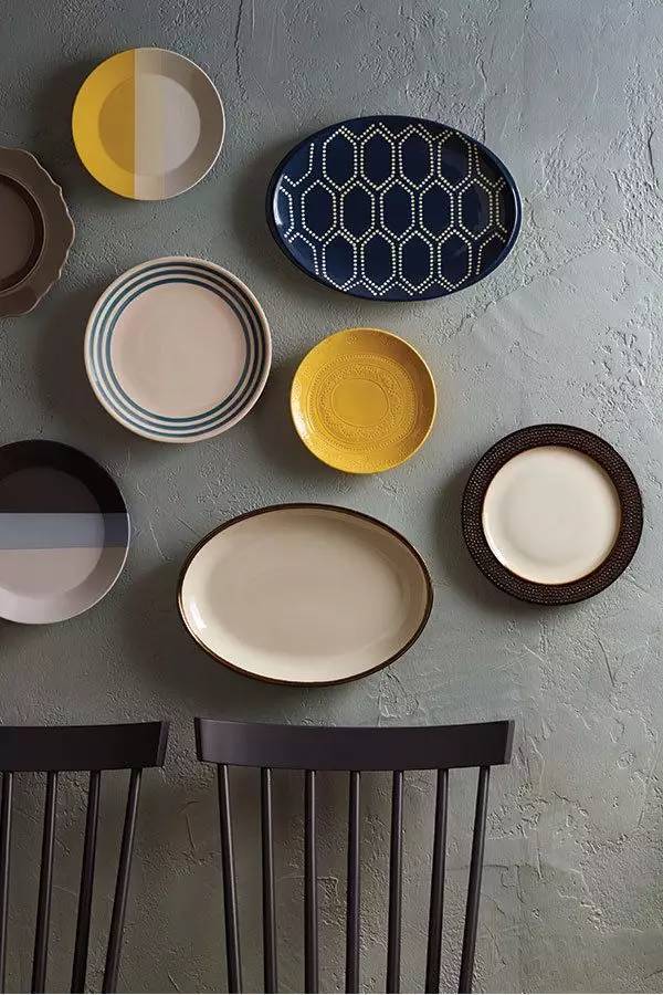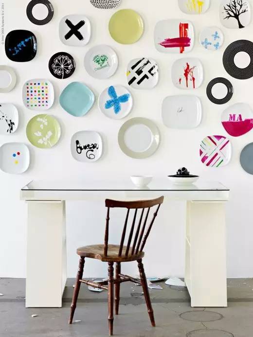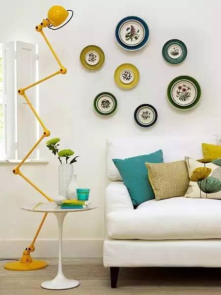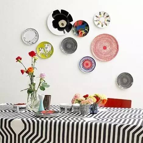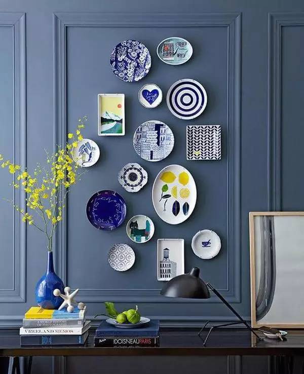 具有百变面孔的盘子可以做各种不同风格的墙面装饰,并现代的留下元素。瓷盘不仅可以让墙面活跃起来,还能显示主人特别的品位