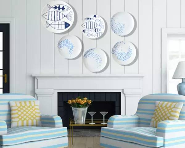 北欧风格崇尚简洁、自然、人性化,这一系列挂盘采用简洁的白底,搭配海蓝鱼元素,清新纯净,与北欧经典样式壁橱,交相呼应、相得益彰。